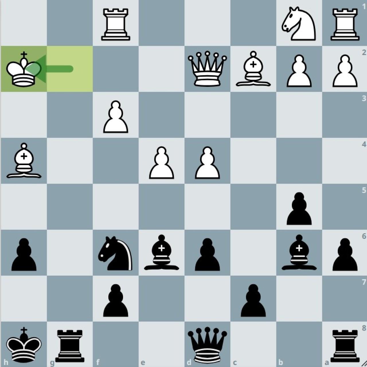 Die Stellung stand am 28. September 2025 in einer Partie der 2. Runde der Bezirksliga Halle zwischen SV Eintracht Bad Dürrenberg und SG 2011 Sennewitz auf dem Brett. Weiß hat im 22. Zug Kh2 gezogen. Was zog Schwarz?